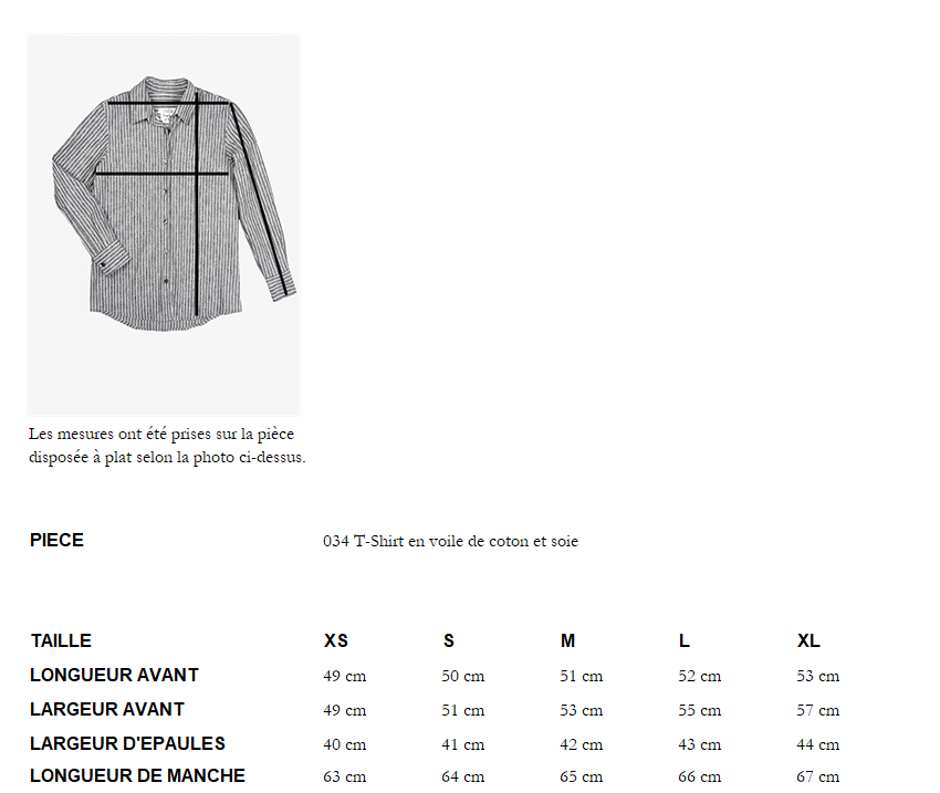 GUIDE DES TAILLES
